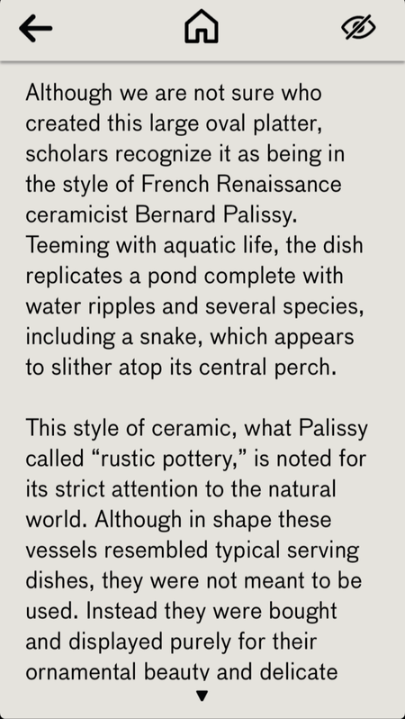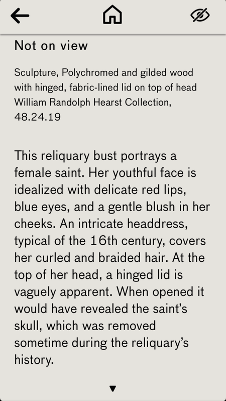 Additional mobile app content titles, subjects, and themes are listed below. All were included on LACMA's mobile app. Stops included researched content and multimedia components (narration, music, video) to further engage users in the museum. The app was hosted on Urban Insight.